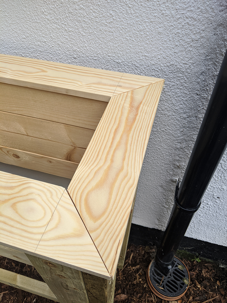 Join the pieces on the top of the planter frame, lining them with the inside edges and allowing for a 1cm overhang around the entire top and screw into place at the corners.