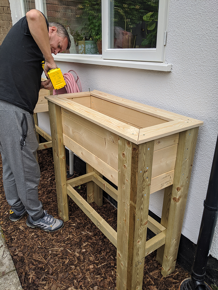 Wayne and I then sat down and went through the Wickes website to see what materials may be best to use. We decided to order in the wood (there was quite a bit to buy and we didn’t think we’d get it in our car in one trip) for the base of the planters and then reassess what we’d need for finishing off the top and creating the little slatted shelf. In the end, it took one delivery and two trips to B&Q to finally finish them but as we were sort of winging it and making changes as we went, you definitely won’t need to do this!